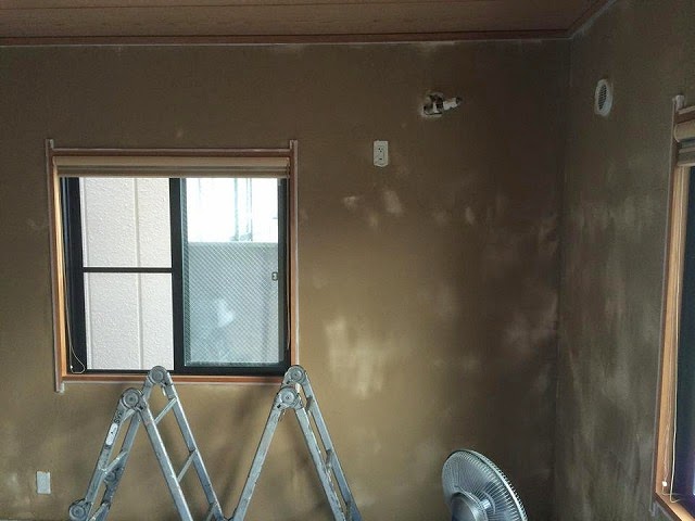 先日、OBのお客様が和室を湯布珪藻土に塗り替えたいということで