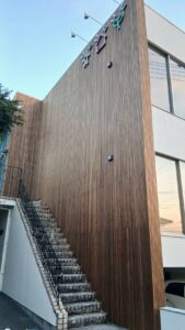 もともとは真っ白な外壁だったのですが、印象をガラッと変えて木の板張りにしました!