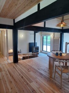 黒い梁は既存のものをそのまま使用しています。