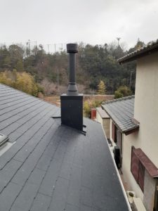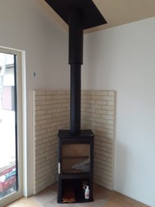 今日の設置は、新築の家です。事前に、煙道が工務店様で施工されているので、煙突をすぐに取り付けることが出来ます。
