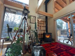 この日は、風も強く雪もちらつく日だったのですが、薪ストーブと太陽を取り込む設計でとてもお家の中は暖かったです。