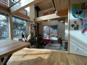 太陽光で明るい室内には、お子さんの作品が飾られ、お引渡しさせて頂いた時よりさらに素敵な空間になっていました。