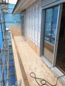 永本建設 > ブログ > S様邸新築工事中 ブログ S様邸新築工事中 2021.05.11 先月上棟したS様邸は現在外部仕舞いをしています。 外部の通気胴縁の施工を終え庇を取り付け軒天の板を貼ったりと外はちゃくちゃくと進んでいます。 外部の残りの大工工事もあとはバルコニー周りだけになりました。 合板の上にケイカル板を貼ってFRP防水の下地が完了するんですがしばらく天気が崩れそうなのでまだ施工途中です。 明日からは中の下地を進めていくので引き続き頑張っていきたいと思います。 大工 前の記事へ 次の記事へ ブログ一覧へ戻る