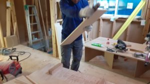 永本建設では大工さんが一段一段丁寧に階段を刻んでいきます。