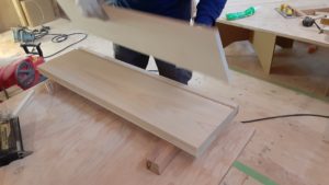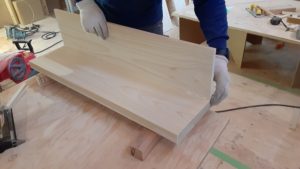 蹴込板と呼ばれる立上がりの部分をくっつけて、固定。