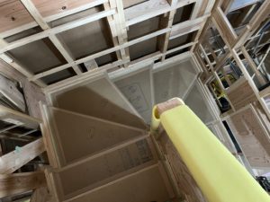 さてさて現在進行中の新築物件で、階段をかける貴重な瞬間に遭遇できたので