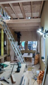 現在は大工さんが内部の仕上げをどんどん進めていってます。