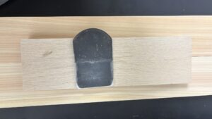 鉋の刃は現代の名工と呼ばれる内橋圭介さんという鉋鍛冶が打った寸八の鉋で、台は樫の木を使いました!