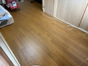 工事内容としましては元々の床の上から新しい床を貼っていく工事でしたが今回貼った床材が6ミリの厚みの床材でして私自身初めて使う材料でとても良い経験になりました。