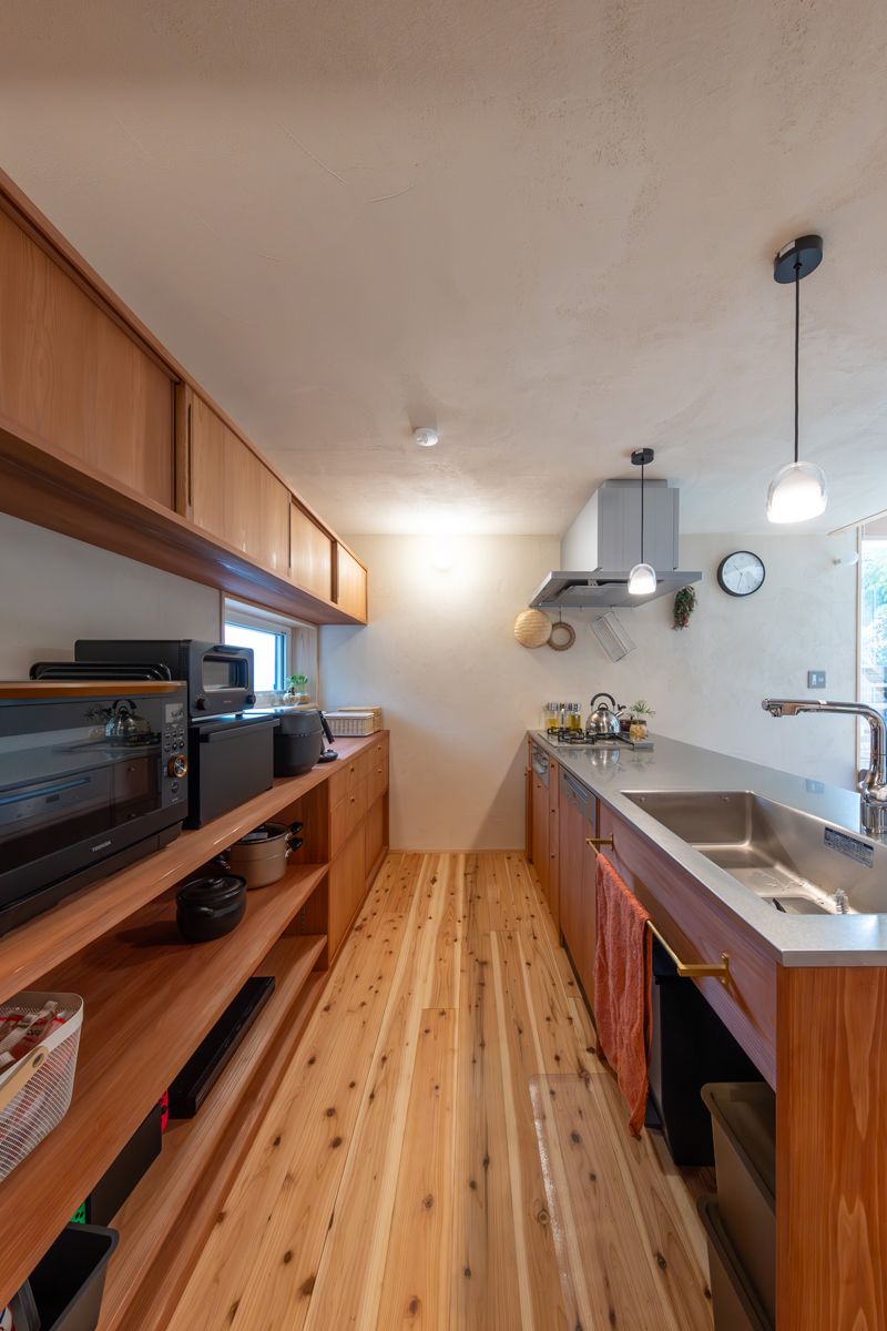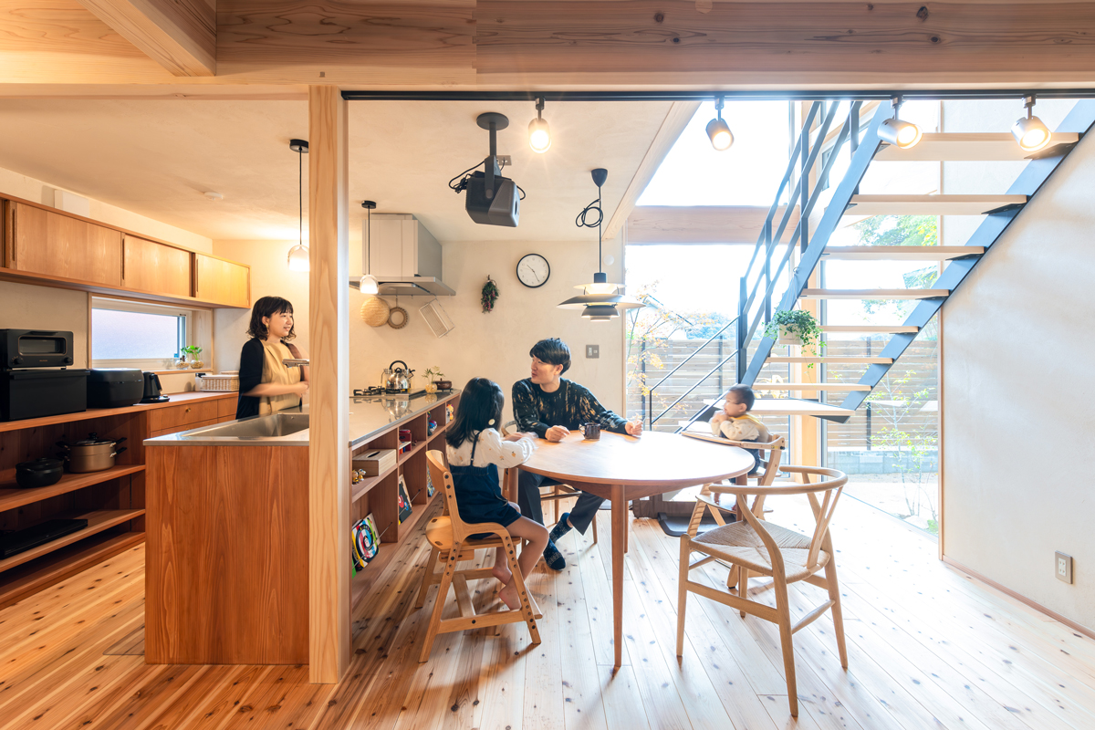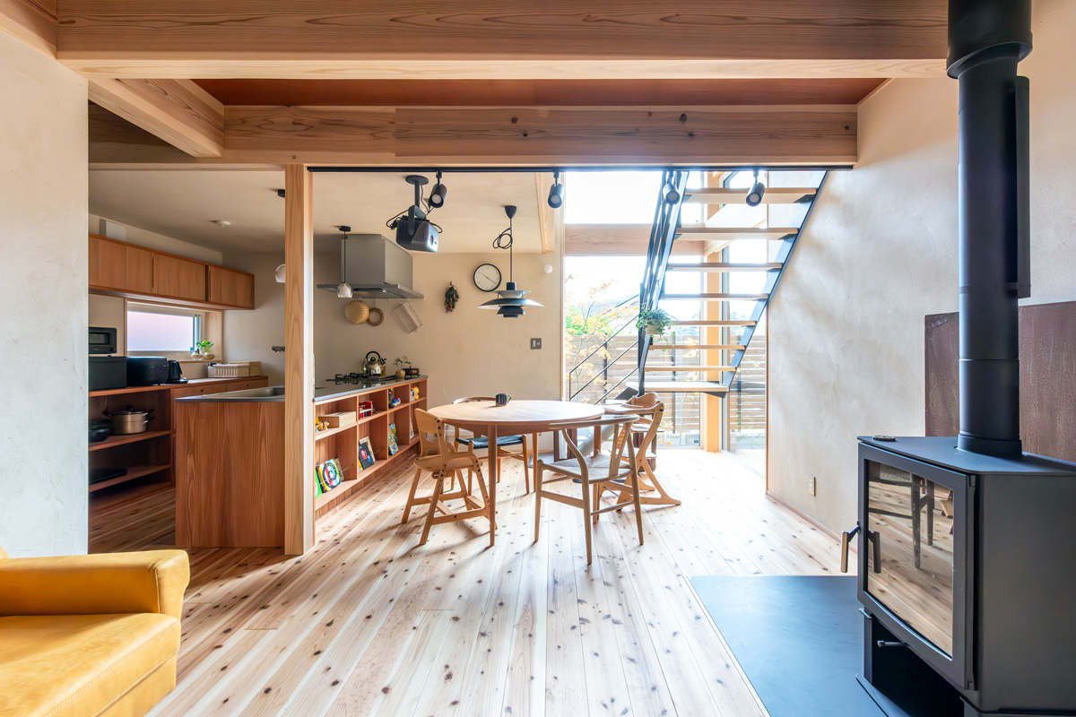 永本建設 > 住まいの実例集 > 光と工夫が息づく心地よい住まい 光と工夫が息づく心地よい住まい 2024年9月 広島県廿日市市 敷地の高低差と目隠し塀を巧みに組み合わせることで、ロールスクリーンを下げなくても通りからの視線を気にせず過ごせる住空間。鉄骨のスケルトン階段や造作キッチン、薪ストーブなど、こだわりが詰まった空間です。 土間には傘立てやアウトドア用品を収納できるスペースを確保。さらに、冷蔵庫をパントリー内に設置する計画とすることで、LDKの空間がよりすっきりとした印象に仕上がりました。 前の事例へ 次の事例へ 住まいの実例集一覧へ戻る