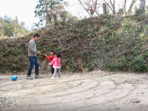 里山に隣接したお庭では、子どもたちが思い切り走り回って遊んだり、