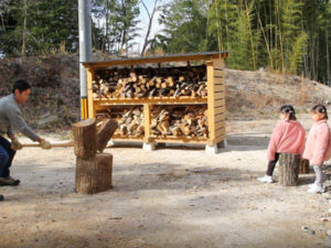 お父さんの見事な薪割りと、それを見守るかわいい応援隊にほっこり。
