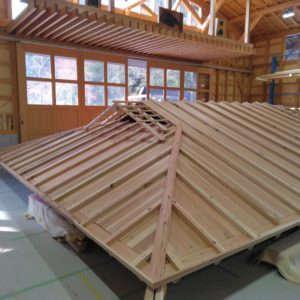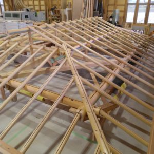 「野隅木」「野垂木」を設置して、仮組が終わりました。